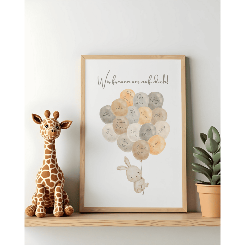 Das zarte Design mit sanften Farben und verspielten Motiven passt perfekt zu einer Babyshower, Babyparty oder Willkommensfeier und wird später zu einem ganz persönlichen Kunstwerk fürs Babyzimmer.