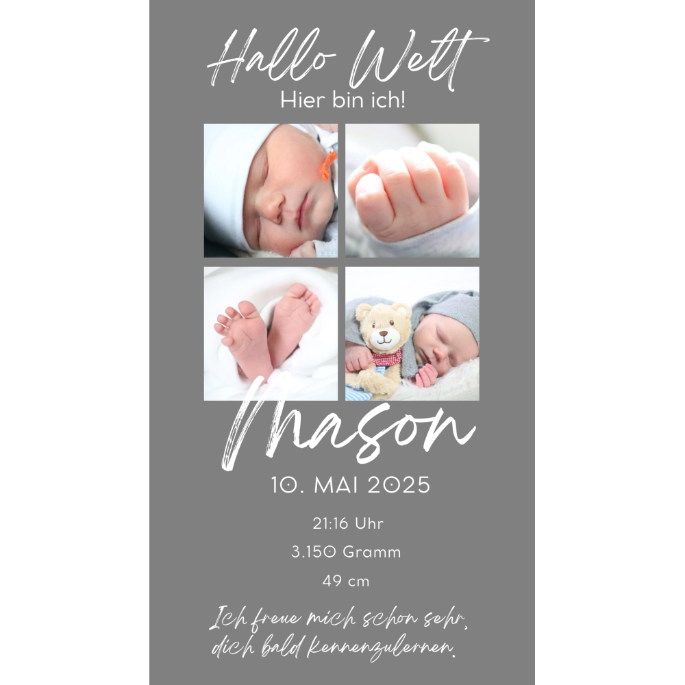 Geburtsanzeige "Mason" - Download zum Bearbeiten mit Canva