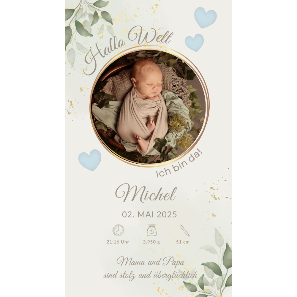 Geburtsanzeige "Michel" - zum Bearbeiten mit Canva